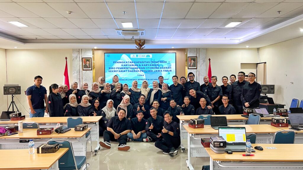 Malang, 29 November 2025 — Entering the second day of the “Building an AI-Based Chatbot Step by Step” training program, AI-LAB together with the Provincial Government of East Java continued the agenda with more advanced and technical-focused sessions. The training, held at the UPT Cooperative Training Center in Malang, was attended by participants from the Bureau of Government and Regional Autonomy, East Java Regional Secretariat, who showed even greater enthusiasm as they moved into hands-on implementation.